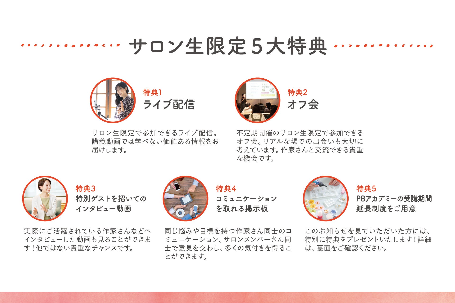 そのお声に応えるため、「売れるハンドメイド作家」になるために学び、実践を重ねることができるオンラインサロン「PBブルーム」をローンチしました。(https://pb-bloom.jp/p/light)