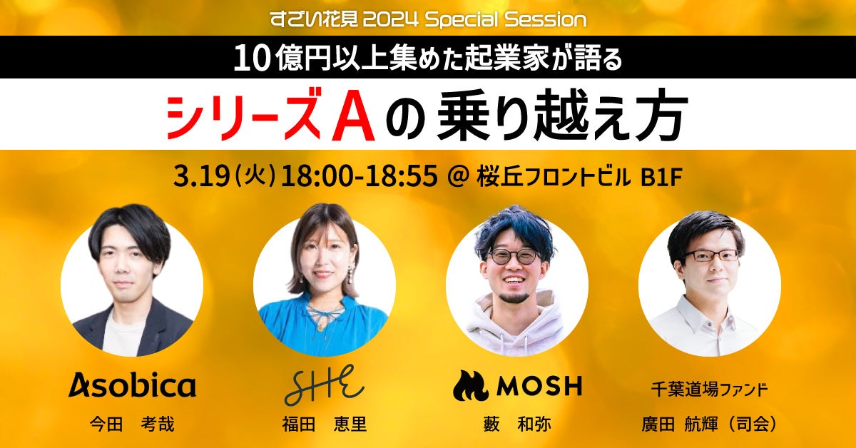 起業家コミュニティを運営する「千葉道場」から生まれた起業家コミュニティベンチャーキャピタル「千葉道場ファンド」は 3月19日(火)17:00 - 22:00にスタートアップのための「すごい花見2024」を開催します。