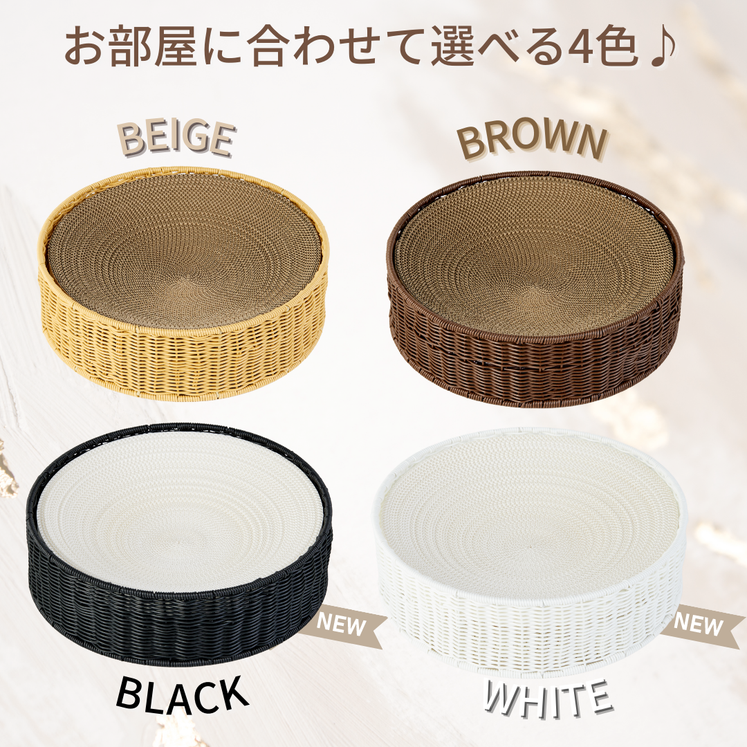 素材:本体・人工ラタン / 爪とぎリフィル・段ボール / クッション・フリース