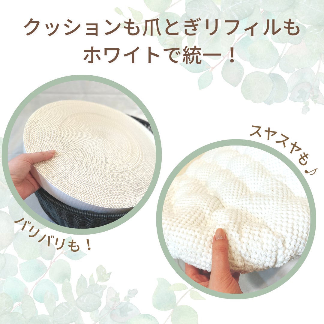 - クッションも爪とぎリフィルも”ホワイト”で統一!