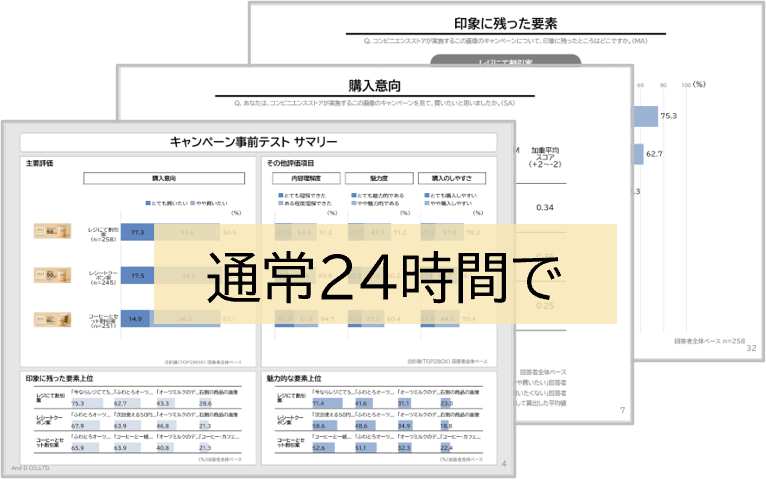 こうした中、今回提供する2つの新しいパッケージにより、キャンペーンや広告クリエイティブの案について通常24時間という短期間で質の高いアンケートによる事前評価が可能となりました。限られたスケジュールの中でも、事前チェックや継続的な定型評価を行うことで、より精度の高い意思決定をご支援します。