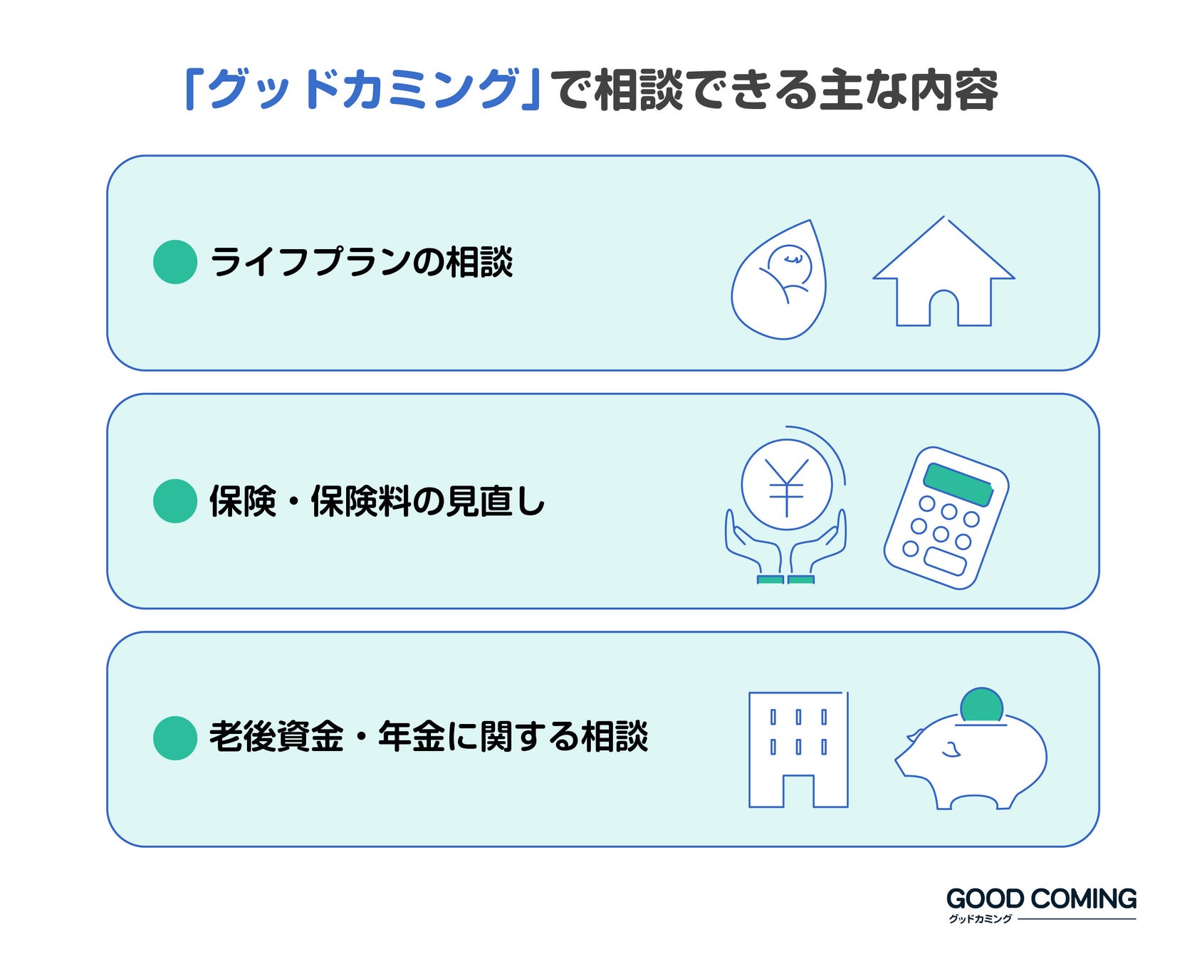 グッドカミングは保険比較ページだけでなく、保険商品の情報を分かりやすく整理し、保険選びのポイントや注意事項に関する記事コラムを提供しています。