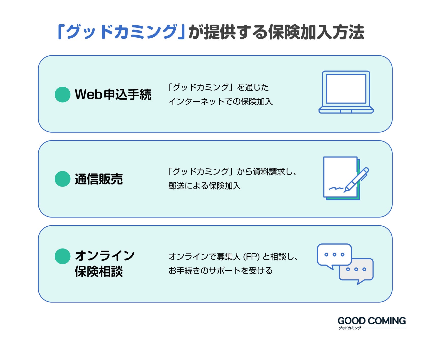 グッドカミングでは、お客様の生活スタイルに応じた複数の保険加入方法を提供しています。