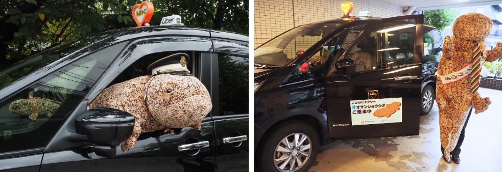 ※オオサンショウウオぬいぐるみが乗るMKタクシーを指定してのご注文はできませんので、予めご了承ください。