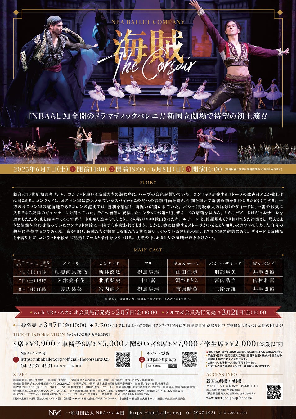 2025年6月7日(土)、8日(日)に一般財団法人NBAバレエ団(本拠地:埼玉県所沢市、芸術監督:久保綋一)は『海賊』を新国立劇場中劇場にて上演いたします。