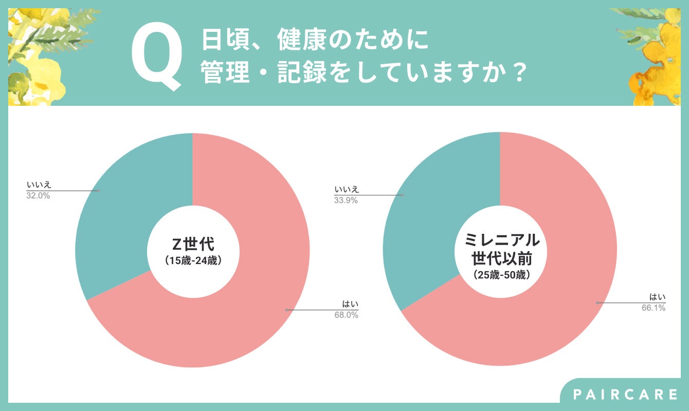 一方で、月経やPMSなどに効果的であるといわれる「ピルの服用」と回答した人はZ世代が12.48%、ミレニアル世代以前は7.85%と、若年層の方がピルの服用率が高い傾向でした。