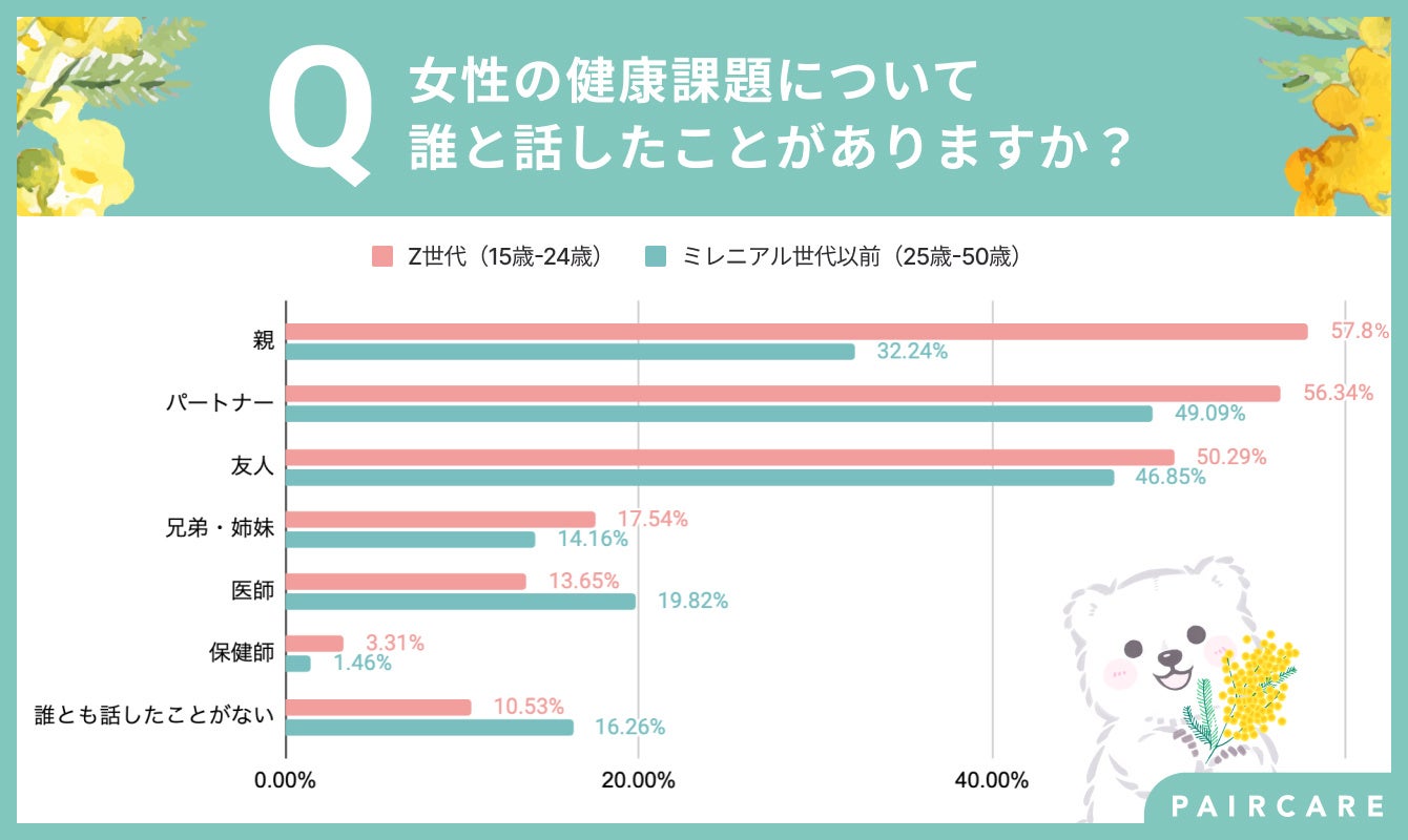 - Z世代の50%以上が女性の健康課題について親やパートナーと話したことがあると回答
