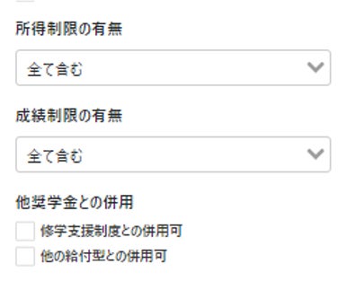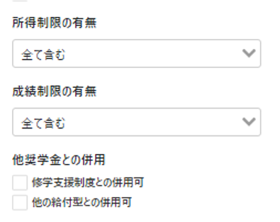 検索条件に他の奨学金との併用可否が追加されました。既に別の奨学金を利用していたり、複数の奨学金の利用を検討している場合でも対象となる奨学金を簡単に検索できるようになりました。