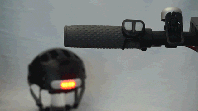 ヘルメットに取り付け可能なウインカー付LEDライト「BLINXI」(ブリンクシィー)