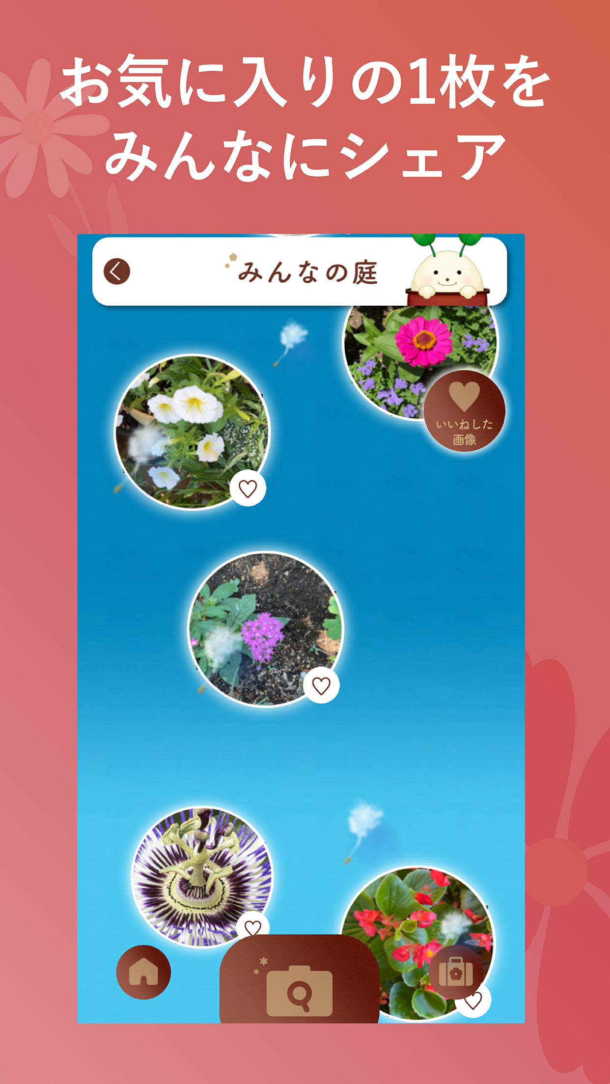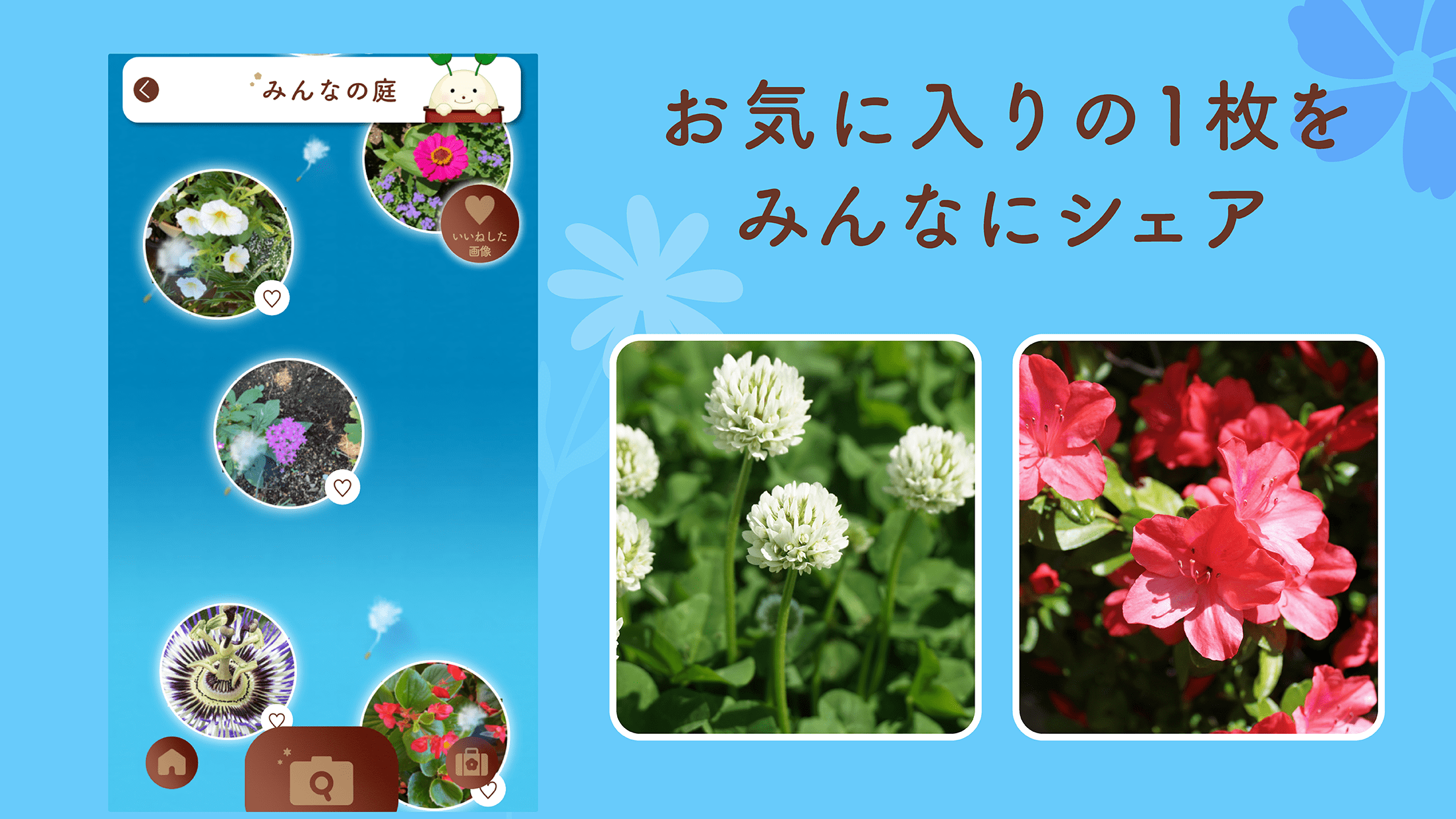 「マイメモリー」に保存した花の写真は、「みんなの庭」で、花好きな他のユーザーに共有することができます。