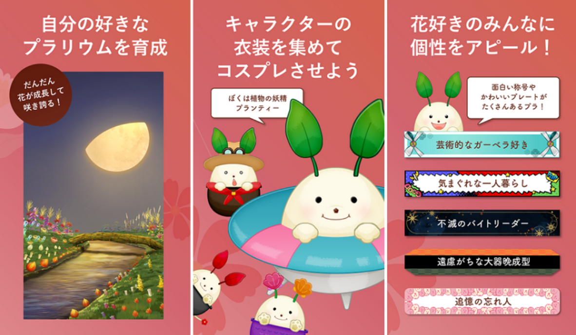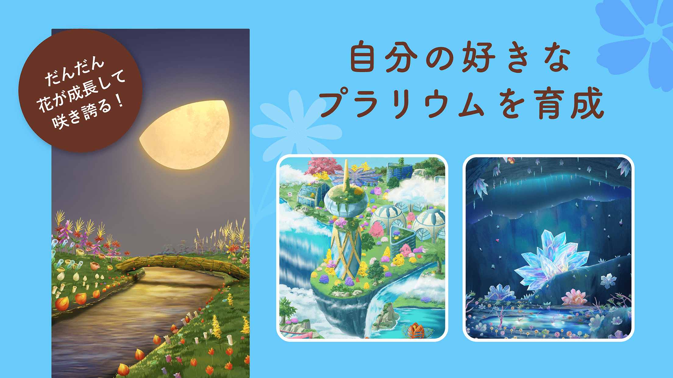 プランティーと一緒に地球上にある花をたくさん撮影して、「プラリウム」にたくさんの花を咲かせてあげましょう。