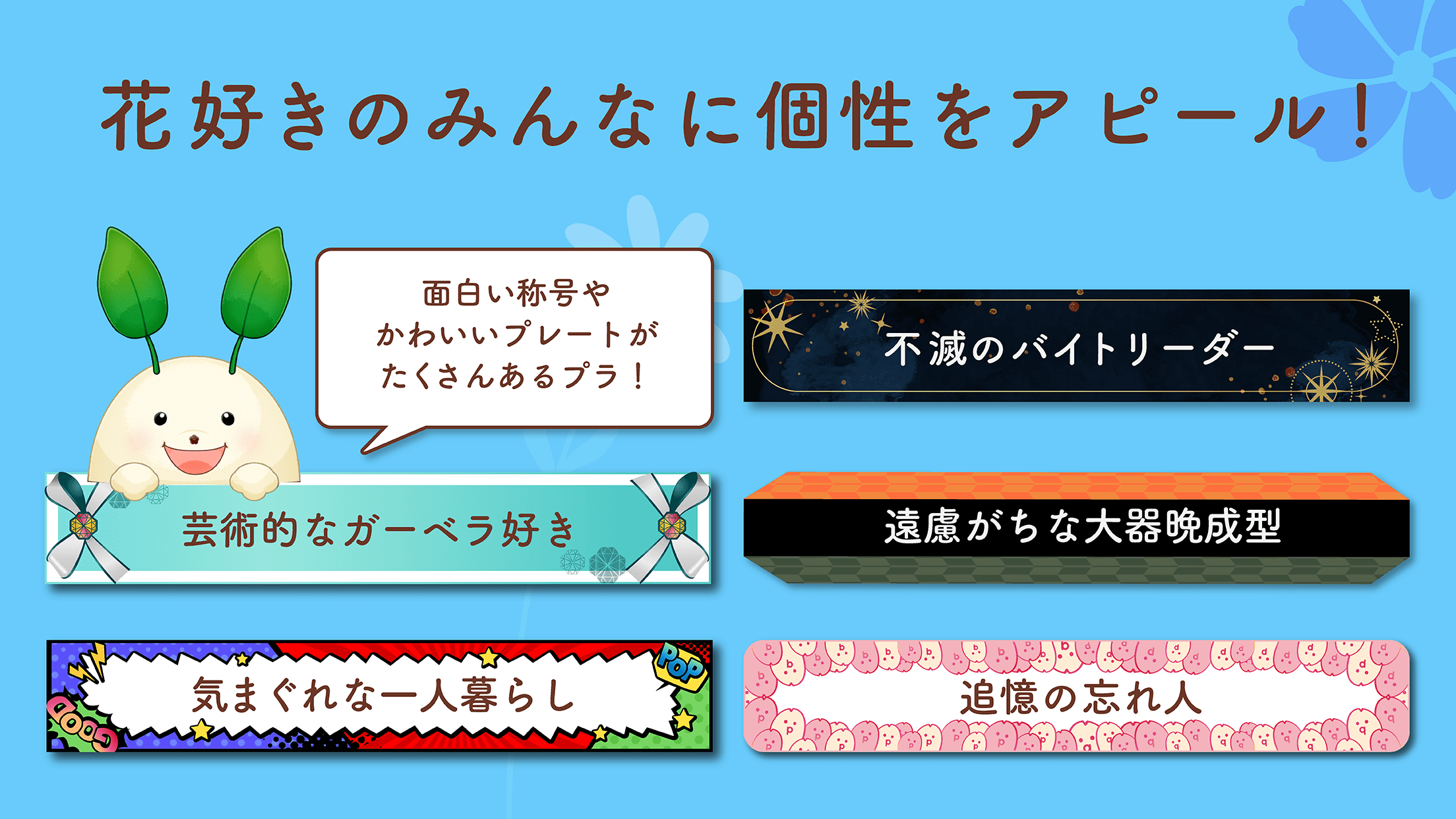 ・「みんなの庭」でアピールできる「称号」や「ネームプレート」