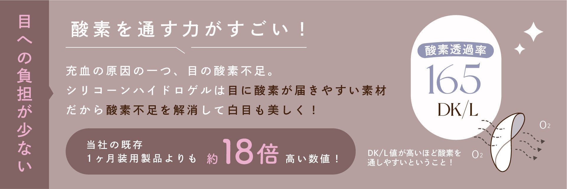 酸素透過率は165DK/Lと、マンスリータイプの中では圧倒的に酸素を目に通しやすい!