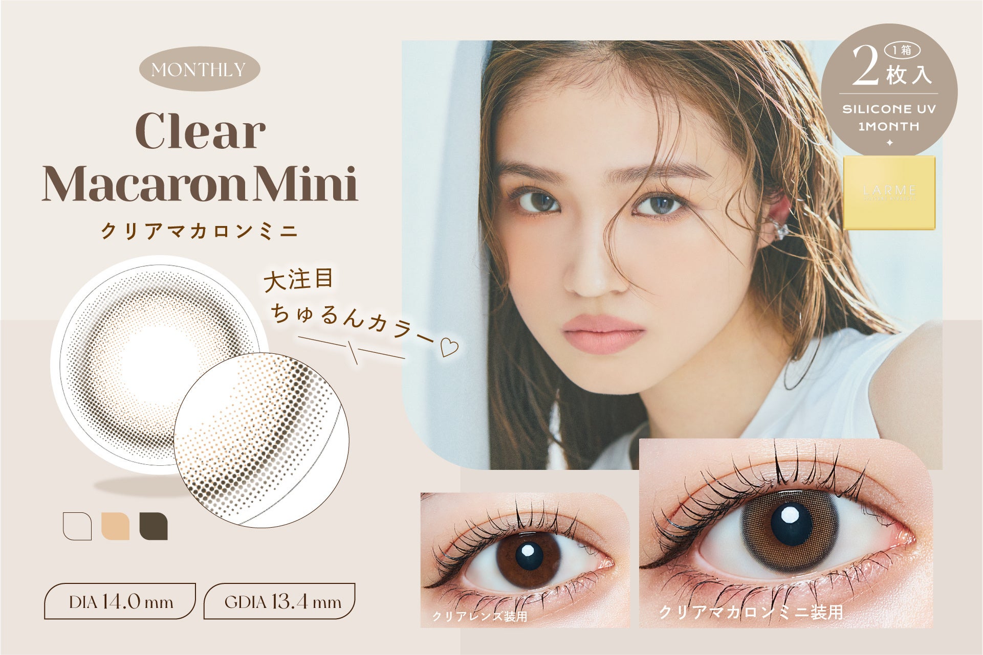 メルティシリーズのクリアマカロンをマンスリー化したクリアマカロンミニは、派手見えしない透明感爆上げなクリームベージュカラー。デカ目になるというよりは瞳に光とうるうる感を仕込んで、あざと可愛く見せるタイプのデザイン。色素薄い系が好きな方には特にオススメです。