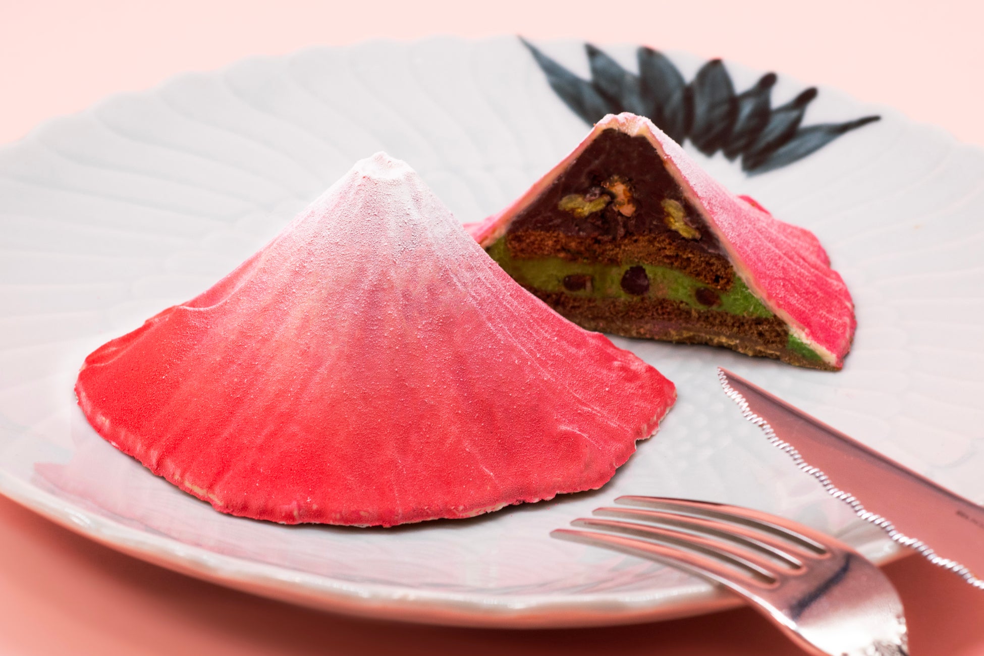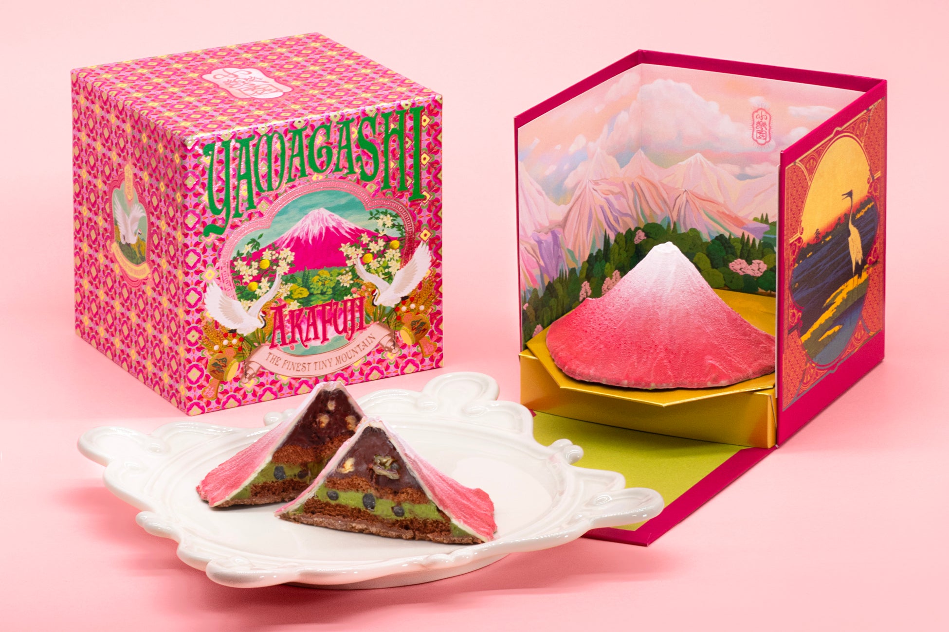 “桃源郷のお菓子屋”小楽園から、紅桃色の富士山「赤富士」が新登場。オリジナルのプレートが作れるデコレーションプレートセットも開始。