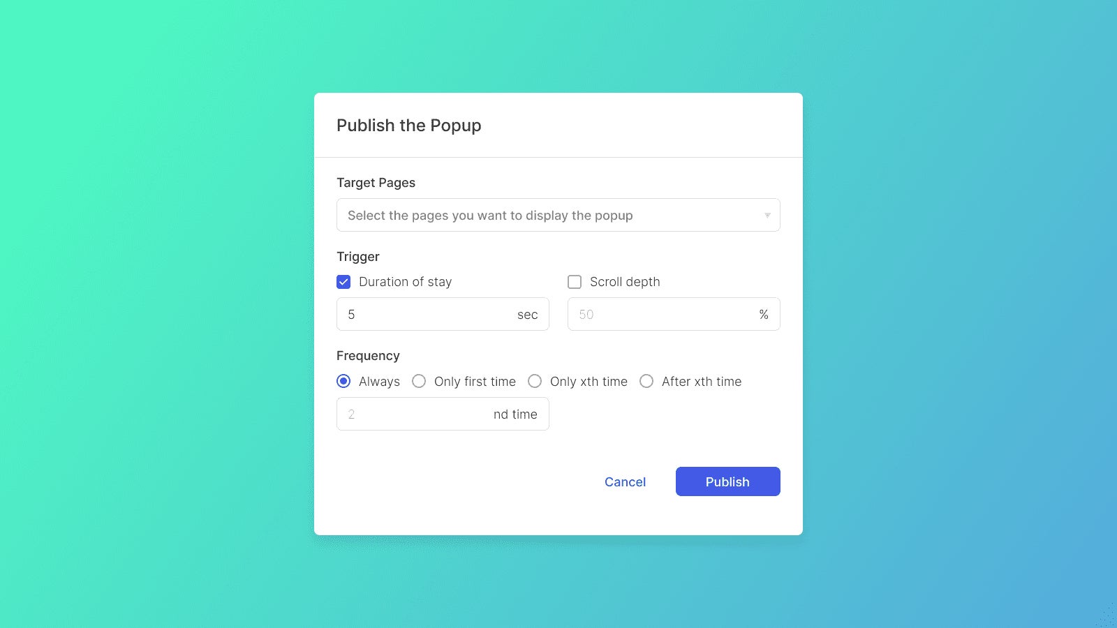 ポップアップの公開は以下項目に応じて表示するタイミングを設定できます。