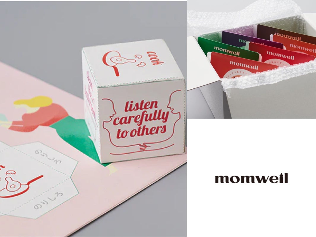 毎日頑張るママを家族みんなで支え、育児を楽しんでいただけるようにという想いを込めて作成した、momwellの「家事サイコロ」を商品に添えてお届けいたします。5つの目には、「洗濯ものたたみ」や「ゴミ捨て」などママたちが手伝ってもらいたい家事の上位5つを入れました。また残す1つの目には、私たちが家事と同じくらい大切と考える「相手の話を聞く」という項目を入れています。パートナーと、お子さんと、家事の分担をゲーム感覚で楽しみながら決めて頂いたり、ママ自身が家事を一休みしたい時のちょっとした後押しにもお楽しみ頂けると嬉しいです。