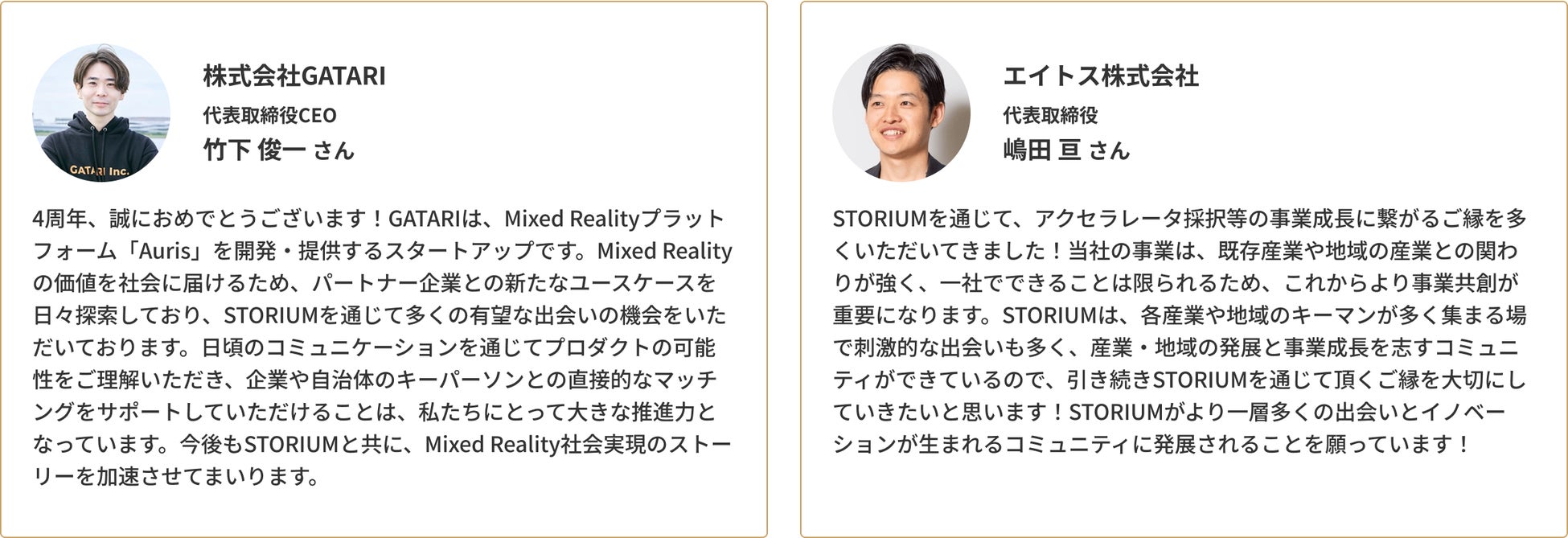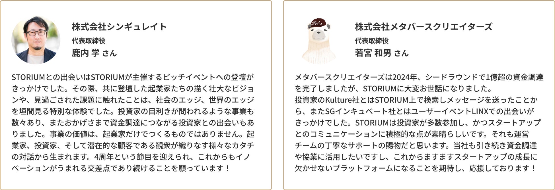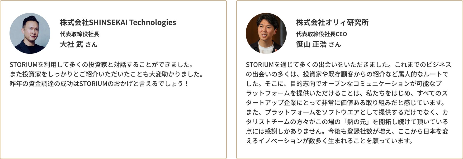 また、STORIUMを利用するスタートアップの皆様からも、応援と期待のメッセージを寄せていただきました。本レポートではその一部を紹介しています。