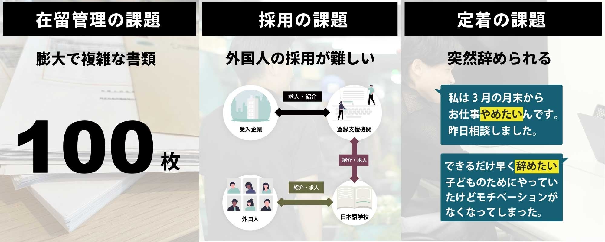 今回のシリーズA調達により、在留管理・採用・定着の各フェーズを横断的に支援する仕組みを再設計。SaaSとして開発を強化し、企業と外国人の双方に寄り添いながら、課題解決まで伴走。現場から見えた構造的課題を解決するため、AIとデータで支える新たな外国人雇用の仕組みづくりを進めます。