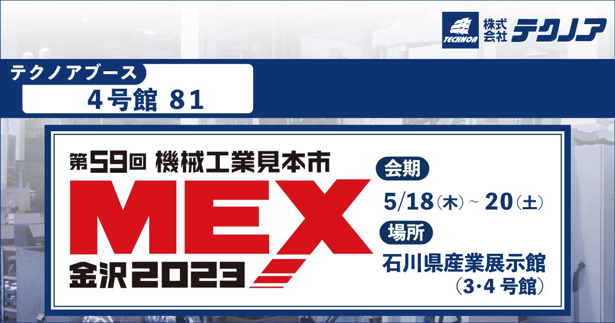 株式会社テクノア(本社:岐阜県岐阜市、代表取締役:山﨑 耕治、以下:テクノア)は、5/18~20に石川県産業展示館(3・4号館)で開催される「MEX金沢2023(第59回機械工業見本市金沢)」に出展いたします。