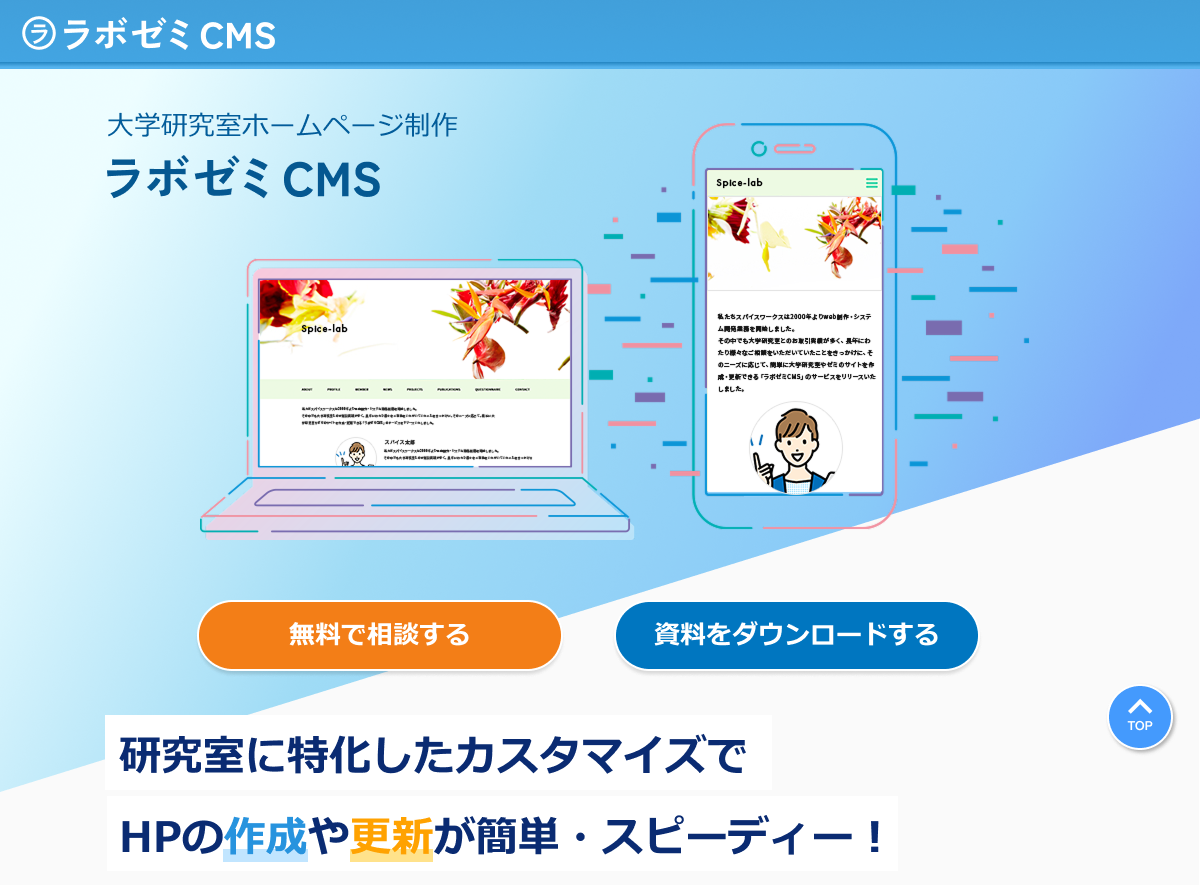 株式会社スパイスワークスは、教育工学分野でのシステム開発支援を20年以上行う中で、研究室の先生方からホームページ制作の相談を受けるようになりました。その声をきっかけに、研究室向けのホームページ制作・運用サービス「ラボゼミCMS」を開発し、多くの研究室サイト構築に携わってきました。