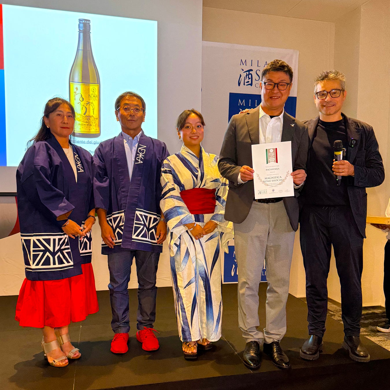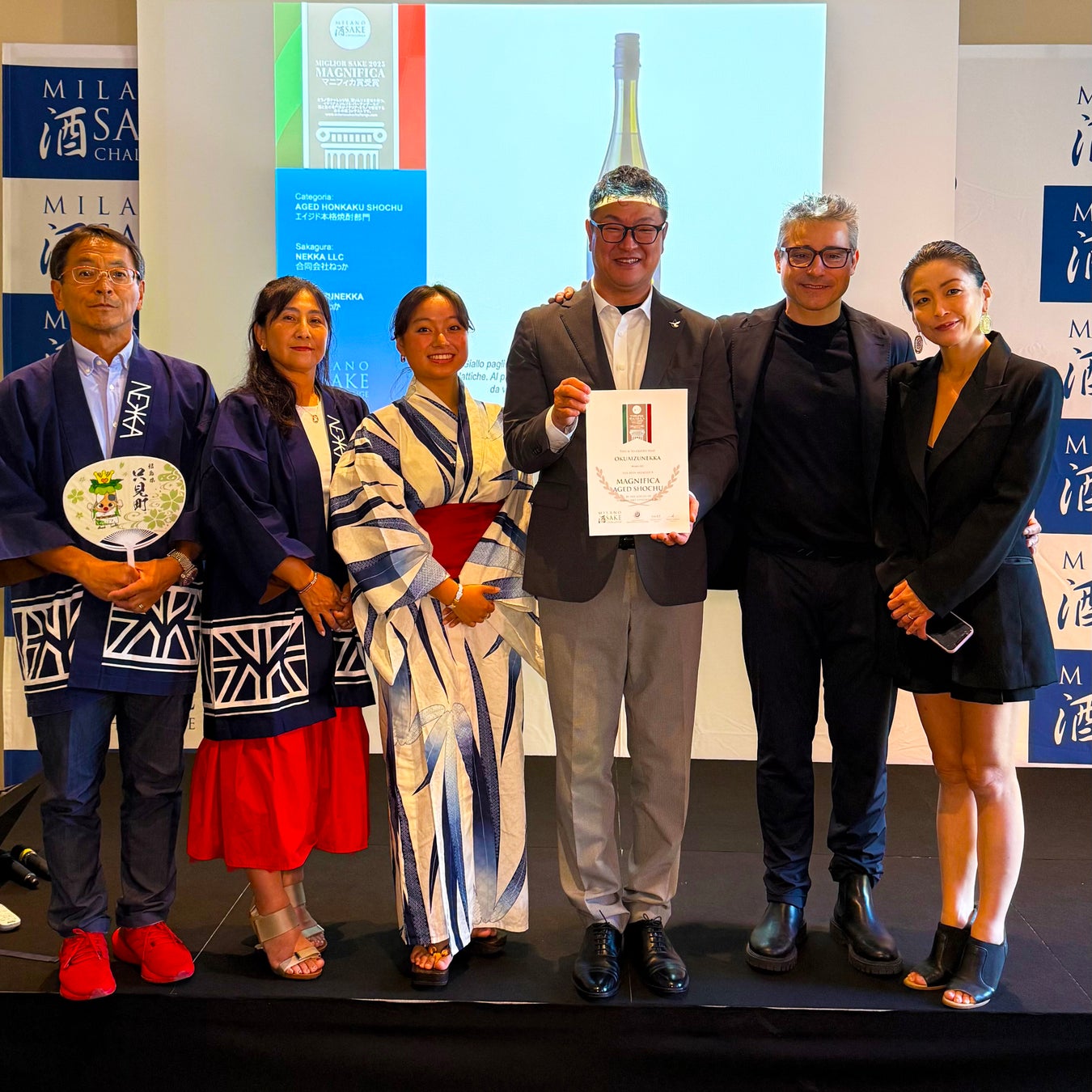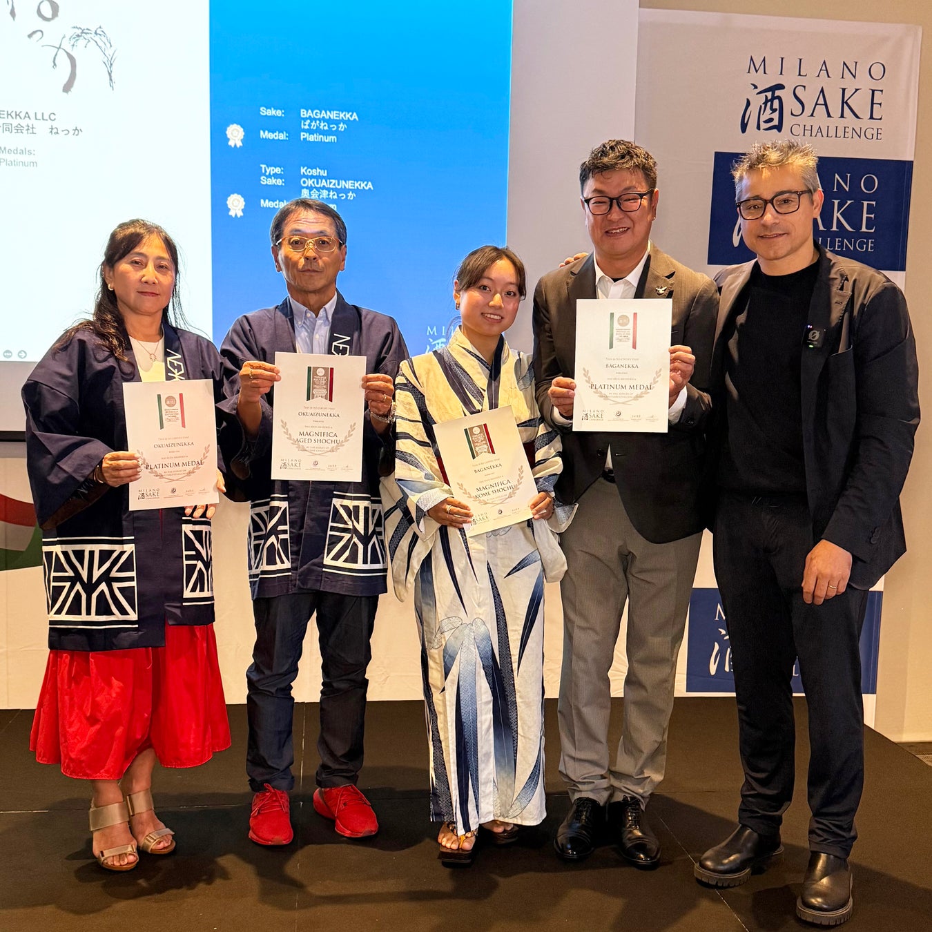 福島の米焼酎「ねっか」の【ばがねっか】【奥会津ねっか】が、イタリア・ミラノで開催された国際日本酒・焼酎コンペティション「Milano Sake Challenge 2025」の最高賞発表・授賞式(2025年9月28日、現地開催)にて、米焼酎部門・エイジド焼酎部門それぞれで『最高賞・マニフィカ賞』を受賞いたしました。