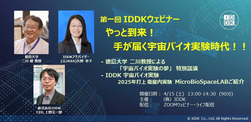 「やっと到来!手が届く宇宙バイオ実験時代!!」4月15日(土)に(株)IDDKがウェビナーイベントを開催いたします