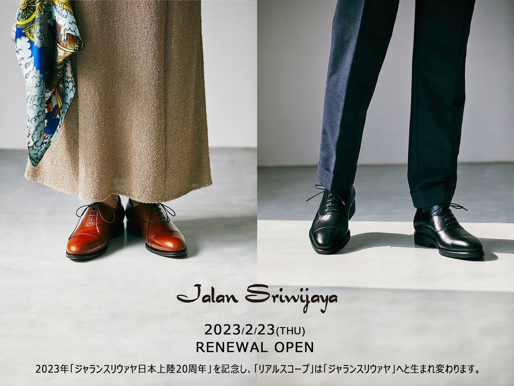 リアルスコープは開業から約25年間、地域のシューズセレクトショップとして親しまれ、横浜の街とともに歩んできました。2023年2月23日、リアルスコープは ”Jalan Sriwijaya 横浜” としてリニューアルオープンいたします。ジャランスリウァヤの専門店としては日本橋に次いで2店目となり、ジャラン製品は一番の品揃えとなります。アンティーク調でクラシカルな雰囲気の店内で、お客様に10年近く寄り添う靴を、じっくりと選んで頂けます。