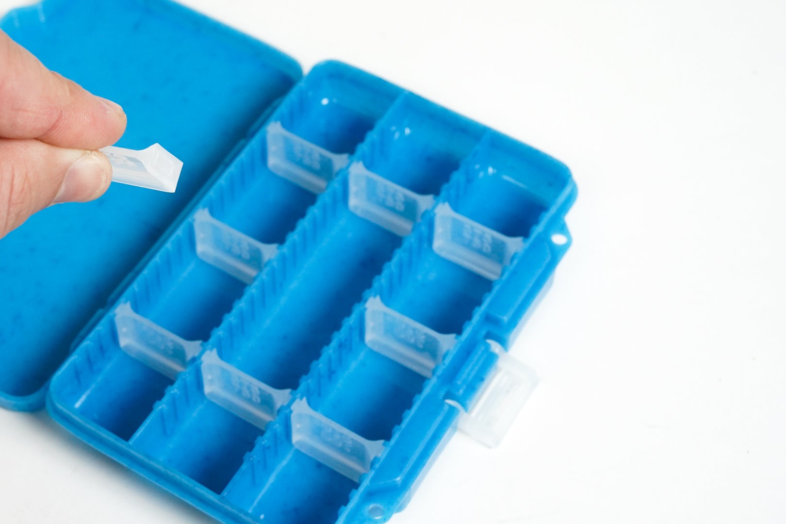 ・仕切り付タイプは5.5mmピッチで仕切ることができるので、入れたいものに合わせたカスタムが自由自在。様々なシチュエーションに合わせたサイズ違いのルアーなどの管理にも最適です。
