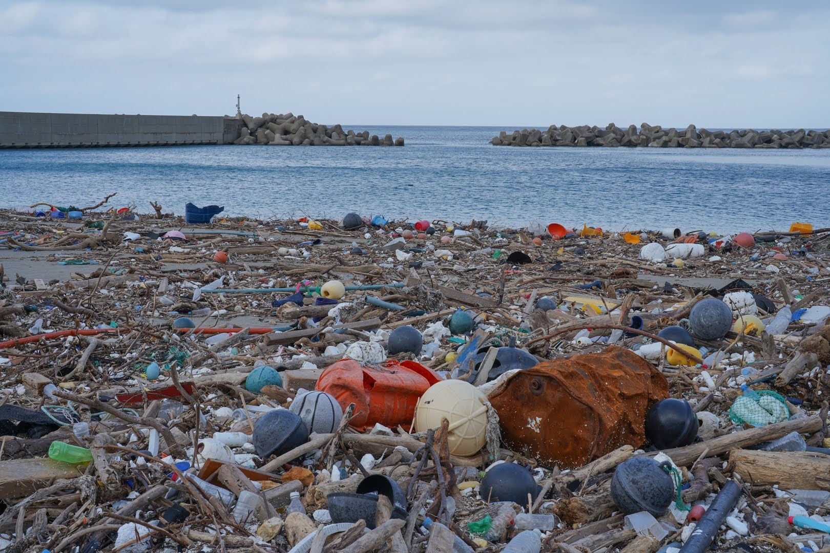 長崎県対馬市は、島の形状や潮流の影響で多量の漂着物が集まる地域で、「海ごみの防波堤」ともいわれています。