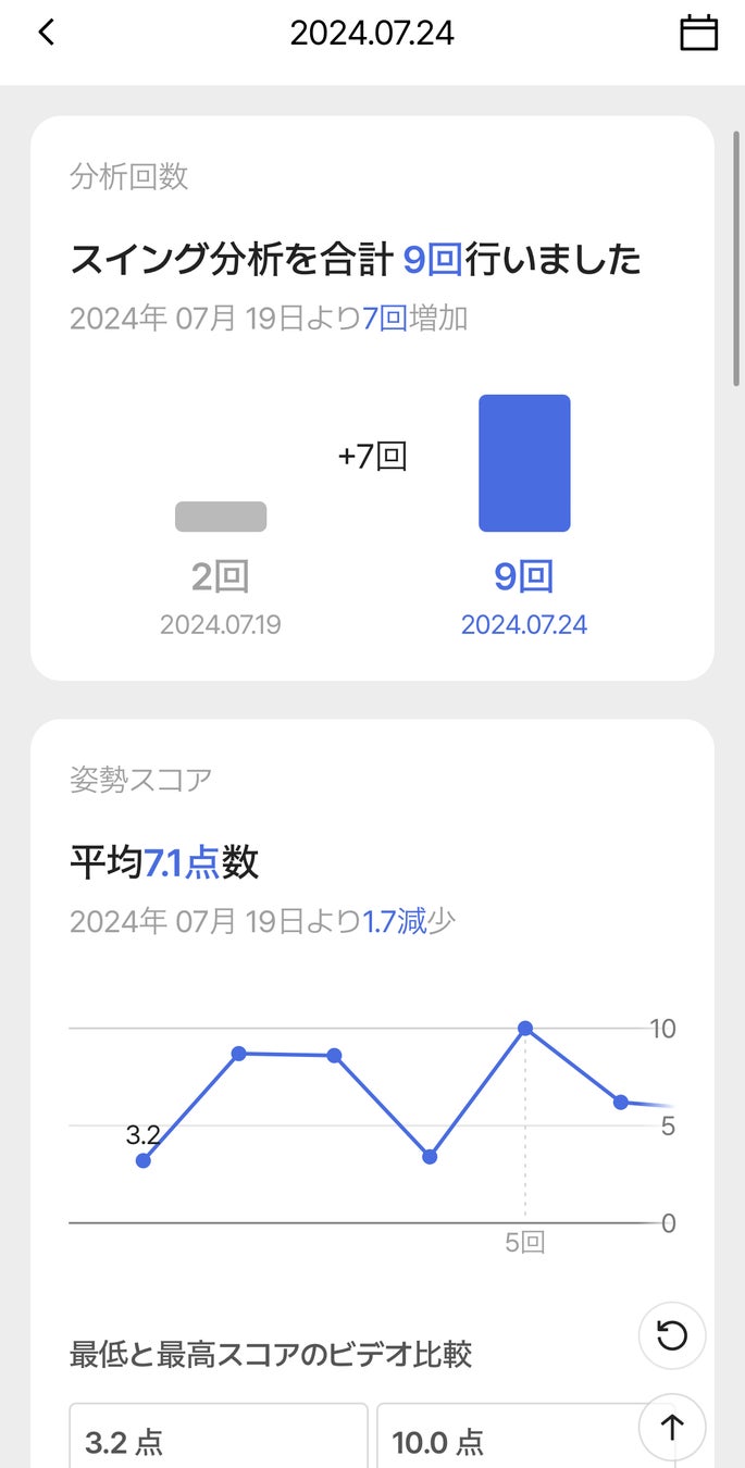 アプリ内のカメラで自身の動画を取ることでAIがスイングを自動分析。そこから改善箇所を見つけ、修正方法を提案してくれる最新のアプリです。