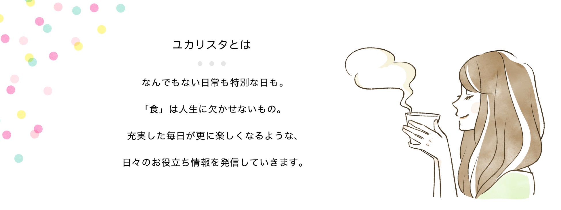 「食」にまつわる情報を通じて、みなさまの充実した毎日を更に楽しくするために『ユカリスタ』をぜひお役立てください。
