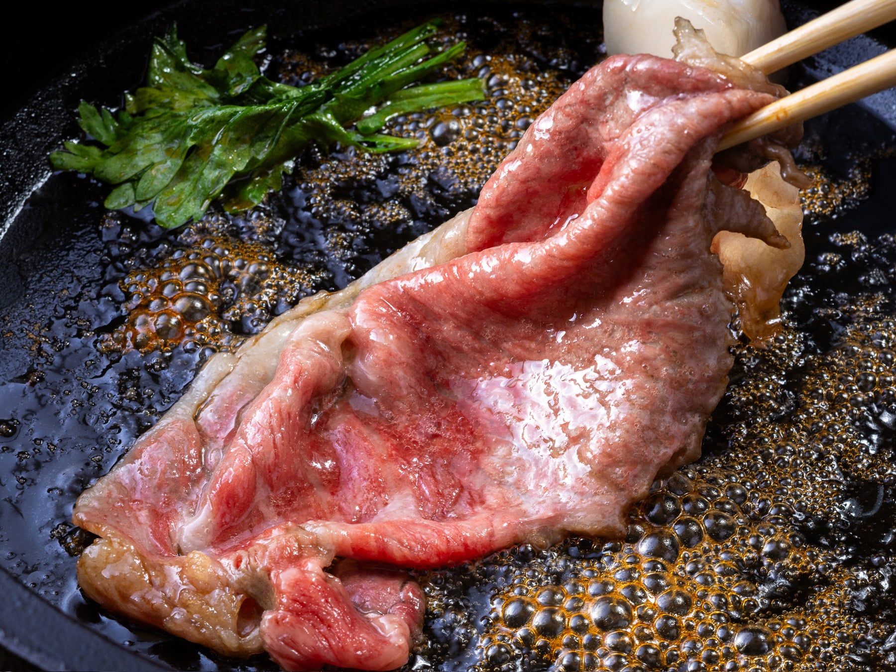 鍋の上でやさしく焼き色をまとった黒毛和牛は、香ばしい香りとともに仕上げられ、最も美しい瞬間に合わせてご用意いたします。