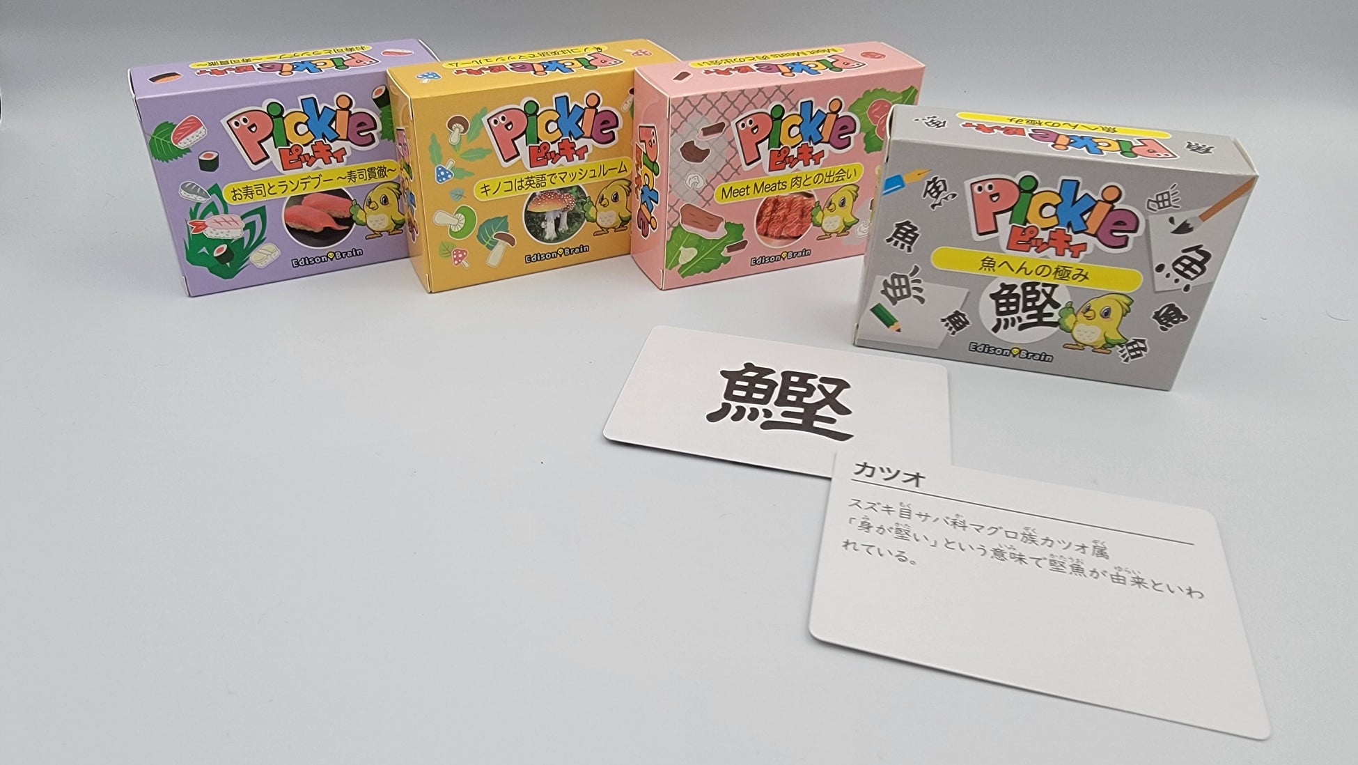 誰でも知っている食べ物や漢字などをテーマに『ピッキィ』を開発しました。