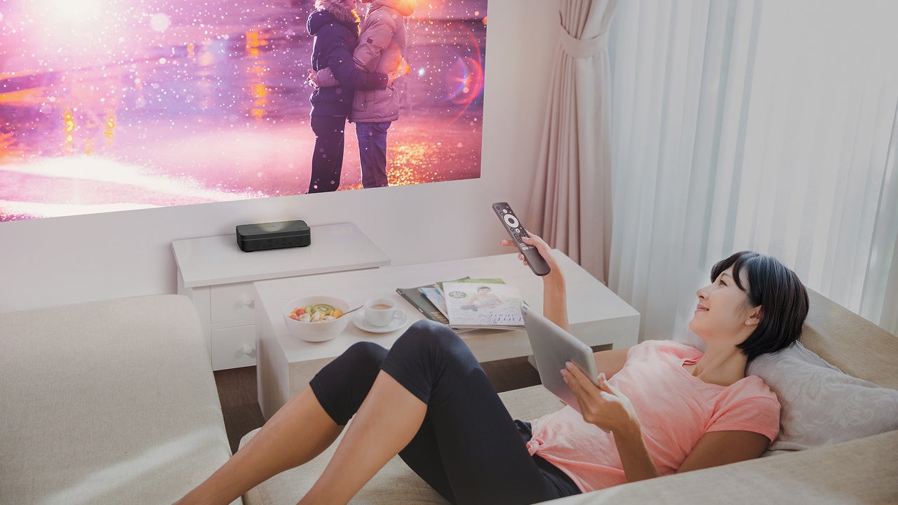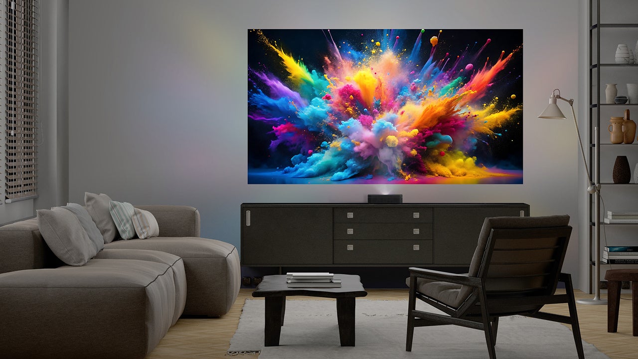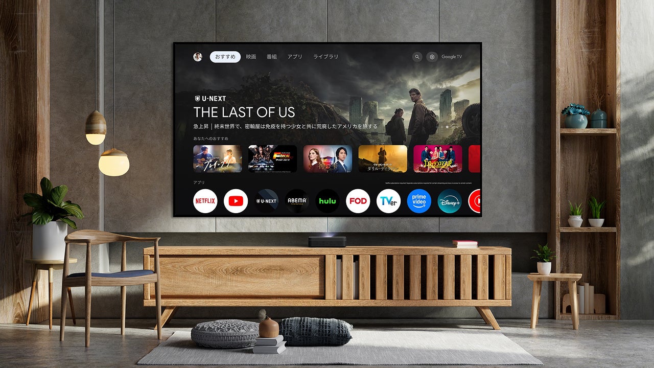 わずか25cmの距離から100インチの映像を投影できる超短焦点モデル。RGBレーザーによる色鮮やかな映像を表現。 さらにGoogle TVを搭載し、どこでもエンターテインメントを楽しめます。