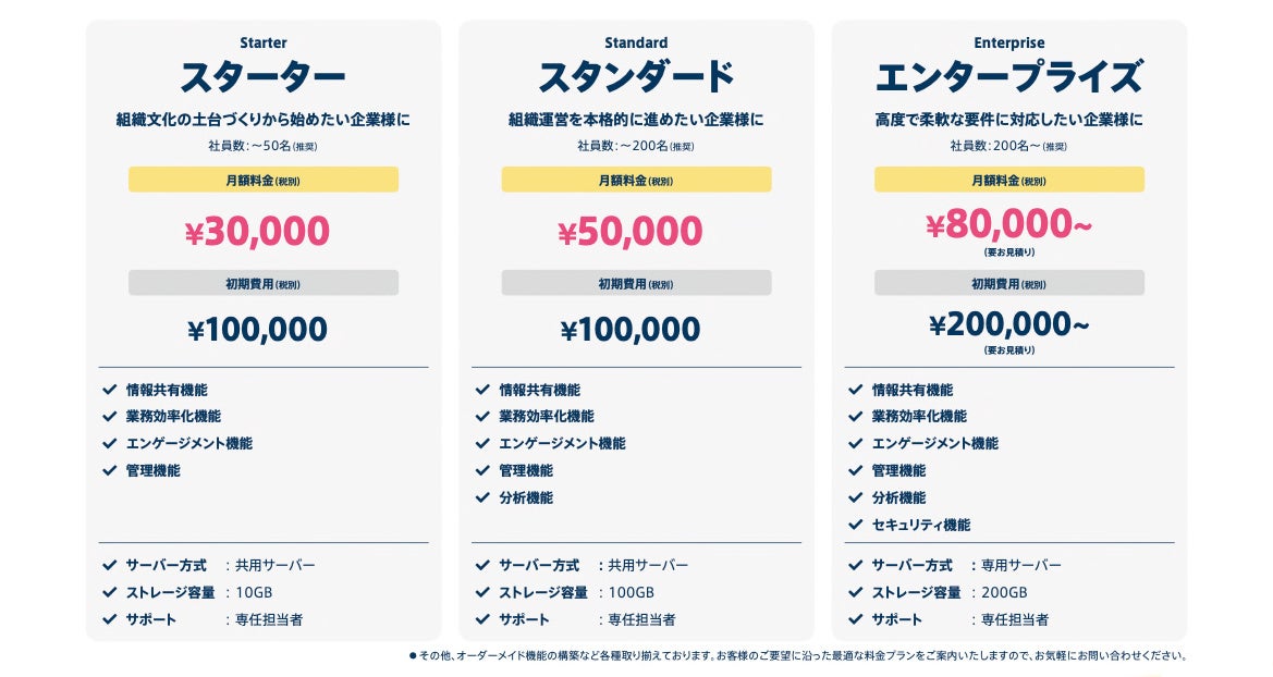 従来は利用機能数に応じた料金体系を採用していましたが、今後はすべてのプランにおいて全機能を利用可能とすることで、導入後すぐにonemindの価値を最大限活用できる形へと変更します。