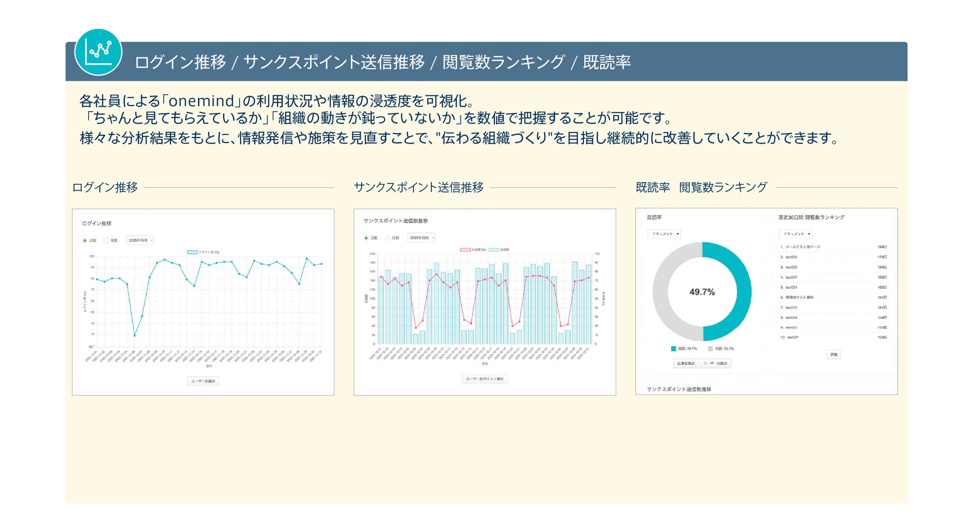 組織づくりを支援する社内ポータル『onemind』、社員の利用状況を見える化する分析機能を追加