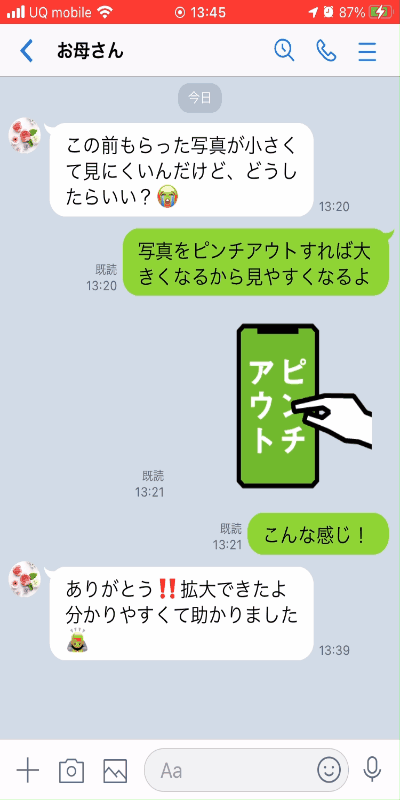 ポイント1:動く!スタンプ1つでスマートフォンの操作説明が完結