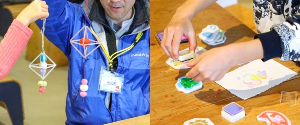 “福祉事業所×あなた”のオリジナルグッズを作るワークショップを実施。木の枝で作るトントゥたちのミニオブジェや、手すきの和紙で作るトントゥ帽子、エコな素材で作る北欧伝統飾りヒンメリ、オリジナルポストカードなど、クリスマスにもぴったりなさまざまなものづくりを体験できます。