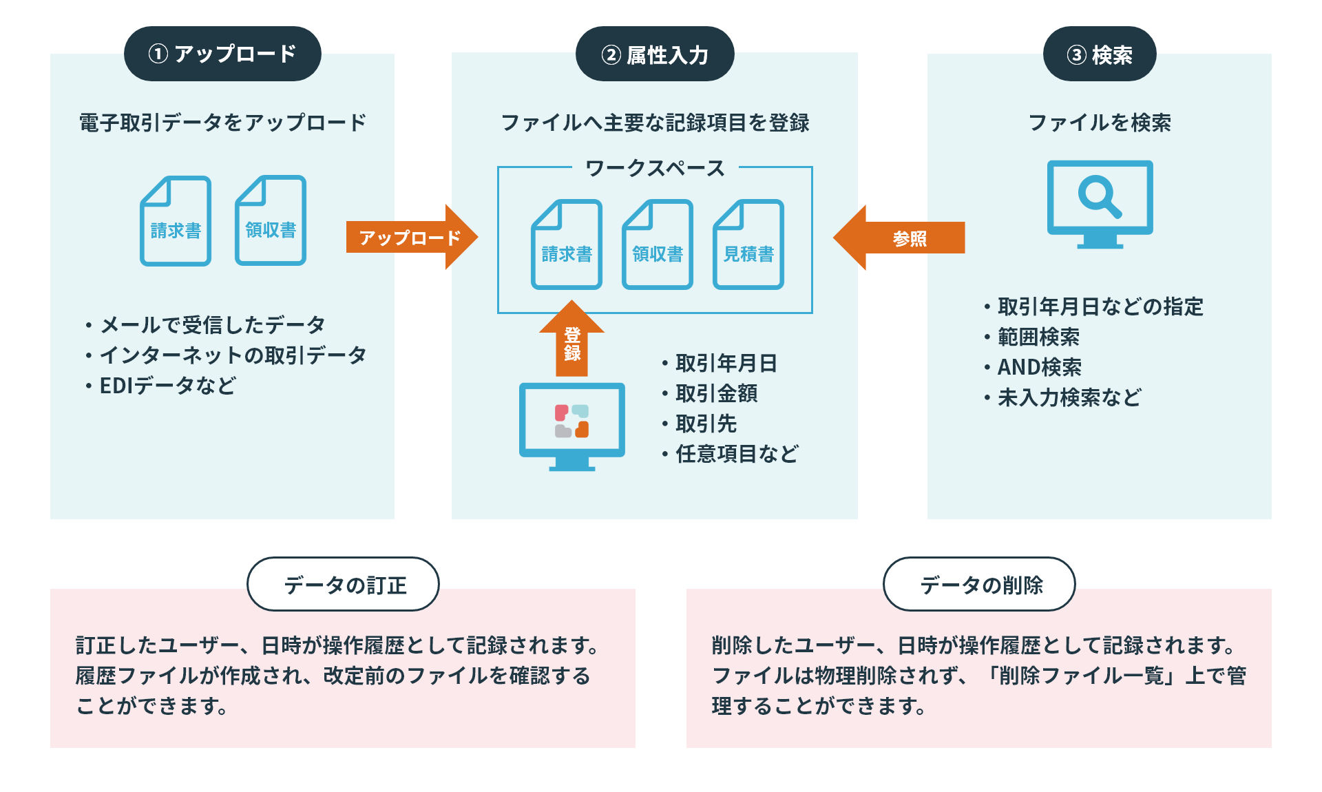 電子帳簿保存法機能の主な機能