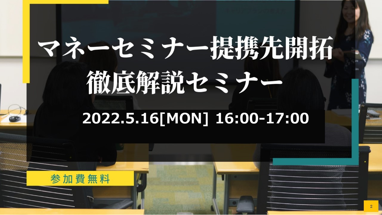 マネーセミナー開催時の提携先を選定するポイント、アプローチする際の具体的な方法について、成功事例をあげながらお伝えします。