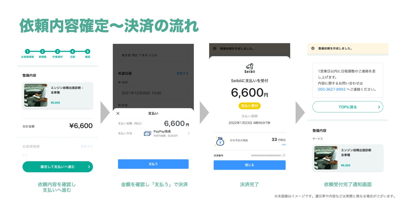 車の整備・修理出張サービス「Seibii(セイビー)」の開発・運営を行う株式会社Seibii(本社:東京都港区、代表取締役CEO:佐川 悠、以下、Seibii)は、PayPay株式会社(本社:東京都港区、代表取締役 社長執行役員 CEO:中山 一郎)が提供するキャッシュレス決済サービス「PayPay」のミニアプリを通じた「セイビー」のサービスを2022年1月18日より提供開始したことをお知らせいたします。これにより、PayPayのアプリをご利用の皆さまには、セイビーのご予約やお支払いなどの各種機能を、PayPayのアプリ上で完了いただけます。