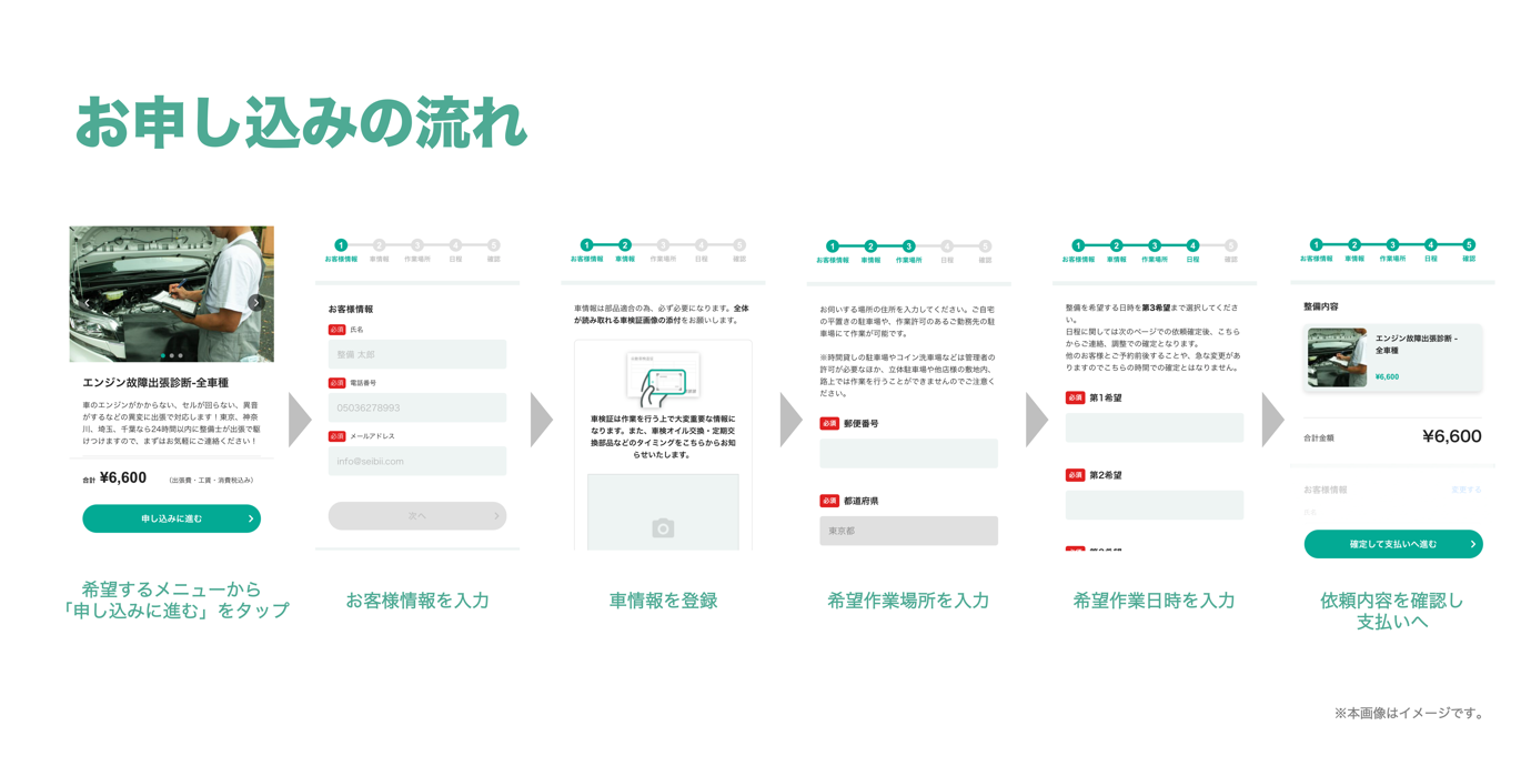 事業内容 :自動車の整備・修理出張サービス「Seibii」の開発・運営