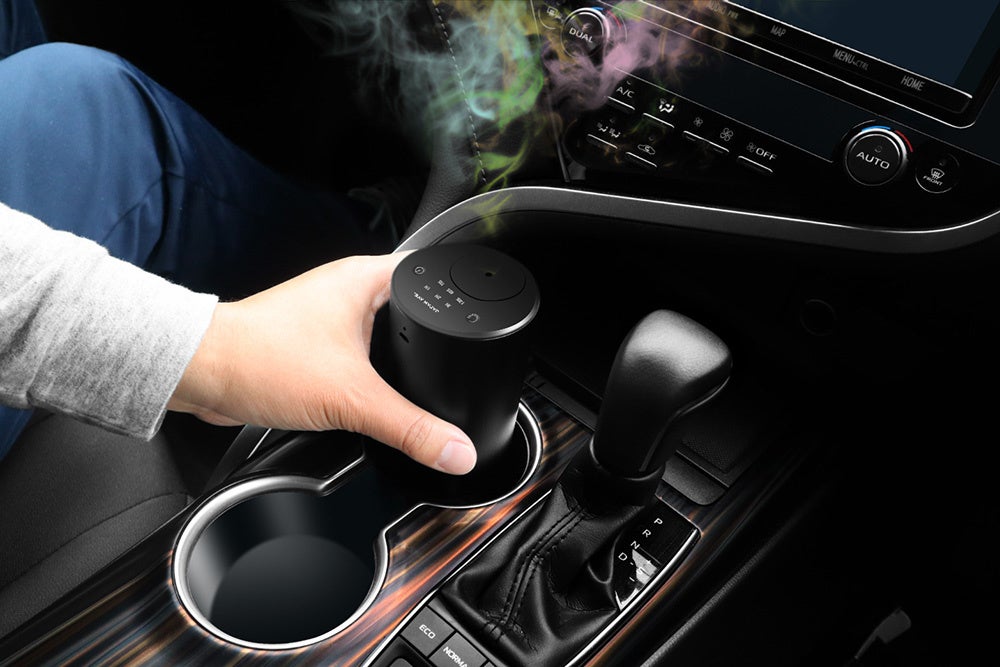 本製品はオイルを直接ミスト化するコンプレッサー技術 (=圧縮技術) を搭載。水不要で天然のエッセンシャルオイル100%を直接車内に噴霧することで、100%天然の香りで空間を満たすことができます。
