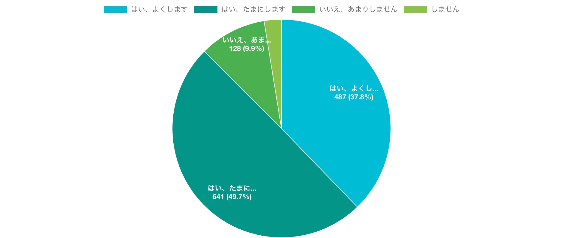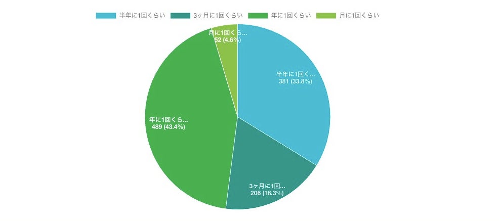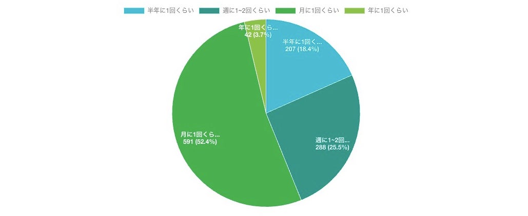 次に愛犬とのカフェやホテルへのおでかけの頻度を調査したところ、大変高い頻度でおでかけを楽しまれていることがわかりました。