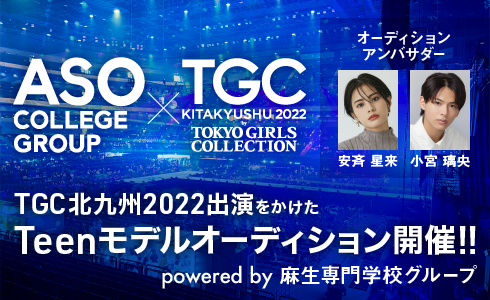 『TGC KITAKYUSHU 2022 by TOKYO GIRLS COLLECTION(以下、TGC 北九州 2022)』のスクールパートナー、九州最大級の専門学校グループ 学校法人麻生塾/麻生専門学校グループ(理事長:麻生健)がサポートするteenモデルオーディションの募集期間を延長しました。