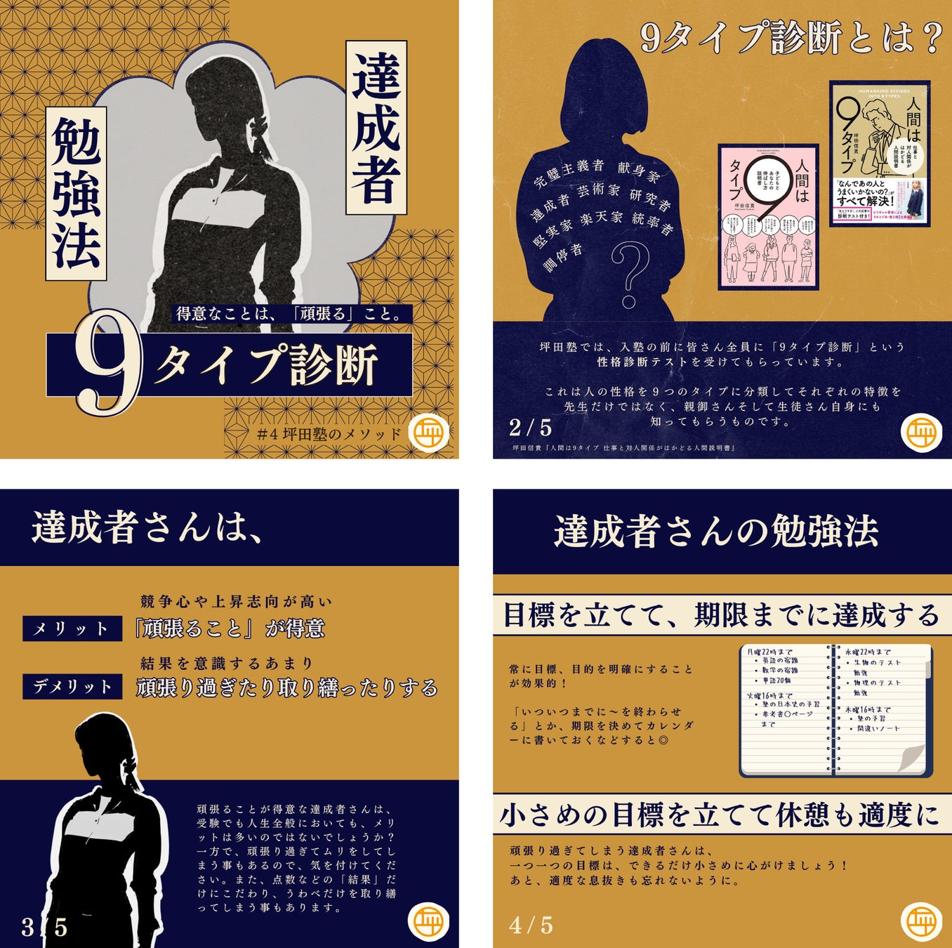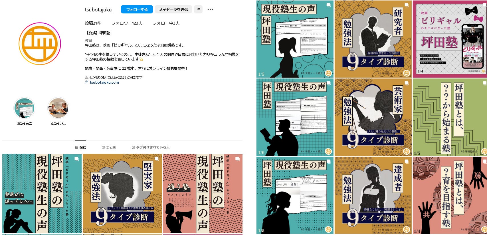 今回のインスタグラム開設も、卒塾生との関わりから生まれた取り組みの一つです。本アカウントの運営を担当し、自身のアカウントでも多くのフォロワーを抱える現役大学生のKさんは、坪田塾に通っていた経験からその学習・指導メソッドを熟知しており、当塾が提供する個別指導(坪田塾では「"子”別指導」を提唱)の価値を広く伝える役割を自ら買って出ました。起業家を目指すKさんの坪田塾に対する愛情や情熱と、Kさんの夢を応援したい坪田塾の思いがマッチし、今回の取り組みがスタートしました。