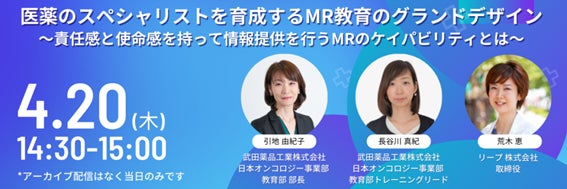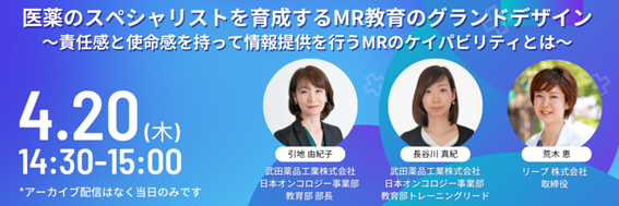 4月20日(木)には武田薬品工業株式会社の日本オンコロジー事業部から教育部部長とトレーニングリードを務めるキーパーソンをお迎えして対談形式のセミナーを開催。インストラクショナルデザインに基づく教育設計を導入している実例を紹介する。