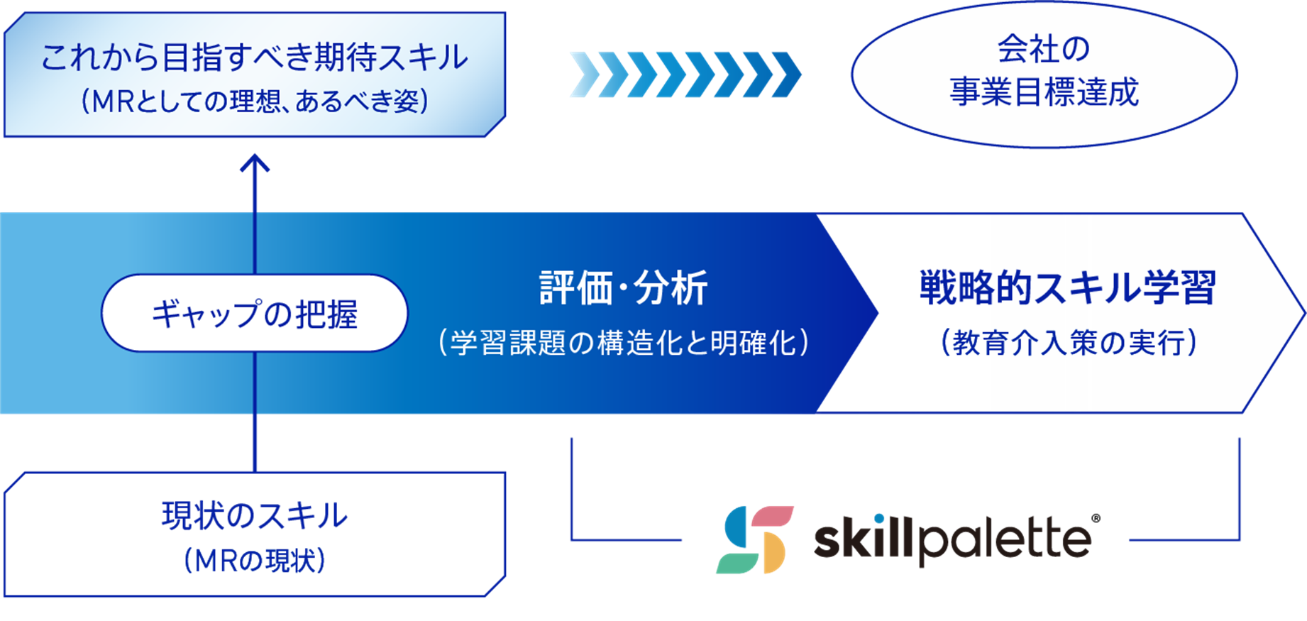 「SkillPalette PLATINUMは、もともと知識レベルが高いMRに対して、座学だけでなく知的技能としての思考力・対話力向上を目指したOJT中心のカリキュラムとなっています。組織のあるべき姿につながる育成プログラムをスキル評価による可視化とインストラクショナルデザインの理論をベースに設計されています」