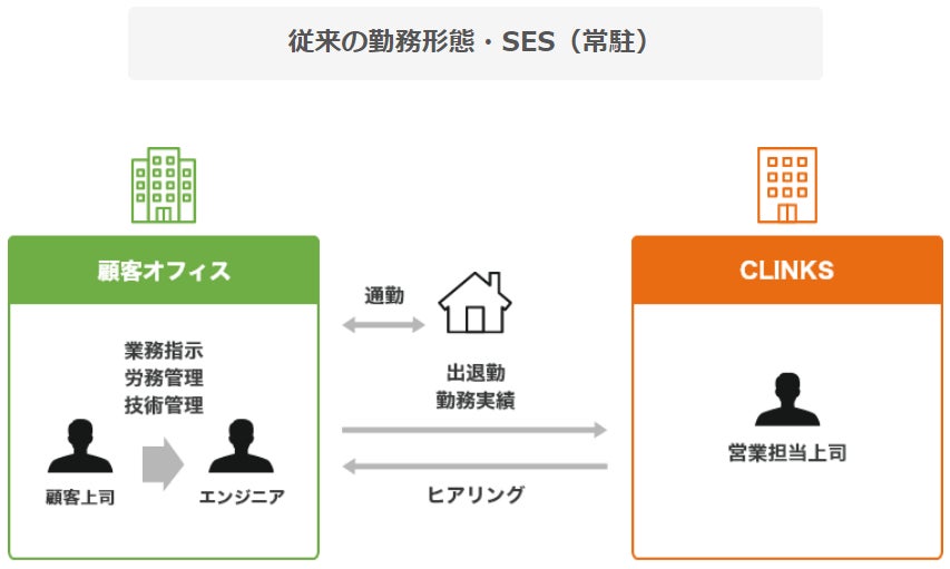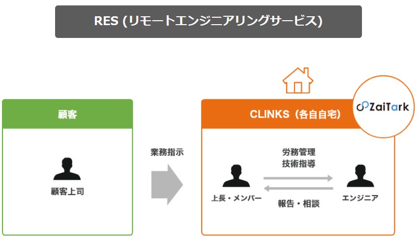 RES(リモートエンジニアリングサービス)は、CLINKSのテレワークのノウハウと技術を駆使した、新しいSESのスタイルです。